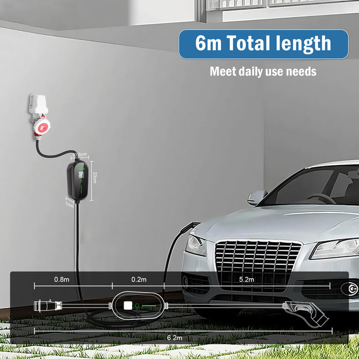 - ✓ Plug & Play-enkelhet: Ingen dyr elektriker eller komplicerad installation behövs. Anslut bara den röda 16A CEE-kontakten till ett motsvarande industriuttag, anslut typ 2-kabeln till ditt fordon, så börjar laddningen automatiskt.