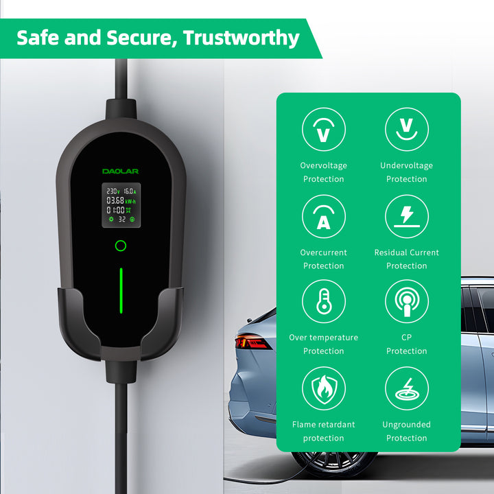 ✅Säker och snabb laddning: Vår bärbara laddare för elfordon har en räckvidd på upp till 5 meter till alla typ 2-laddstationer eller hemma. Med en maximal effekt på 7,4 kW får du kortare laddningstider, så att du snabbt kan komma tillbaka på vägen. Laddaren har också en automatisk avstängningsfunktion för att förhindra överladdning och därmed säkerställa batteriets livslängd.