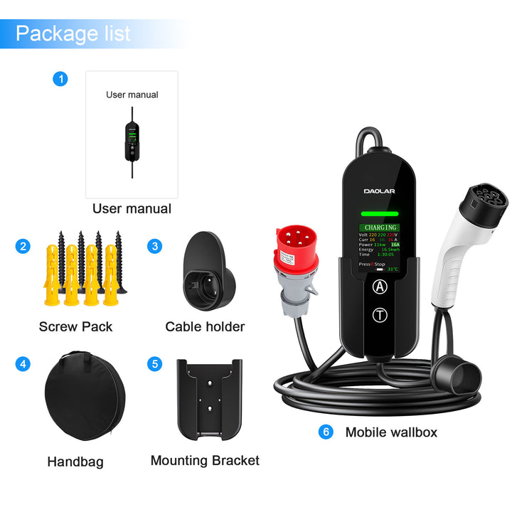 Upptäck Daolar YUQ1 Mobile Wallbox, en innovativ 11KW bärbar EV-laddare designad för den moderna europeiska elbilsägaren. Detta är inte bara en vanlig laddare; det är en av de få på marknaden som kombinerar ultimat portabilitet med den unika förmågan att exakt begränsa laddning genom att ställa in en varaktighetUpplev oöverträffad flexibilitet, snabb laddning och intelligent kontroll, allt i en kompakt, högkvalitativ och prisvärd enhet.